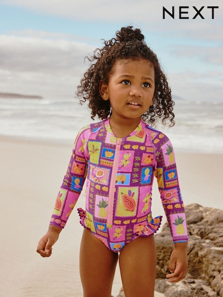 Purple/Orange Tropical Sunsafe Long Sleeve Swimsuit (3mths-7yrs)
