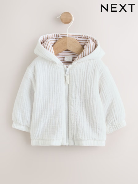 White Crinkled Baby Hooded Jacket