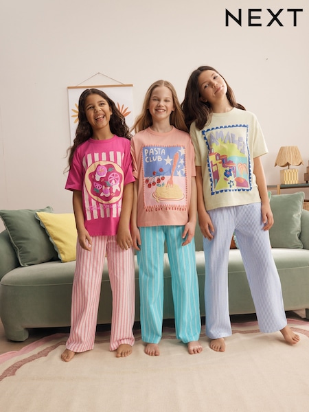 Orange/Pink Orange/Blue/Pink Wide Leg Pyjamas 3 Pack (3-16yrs)