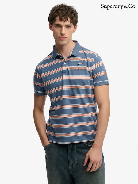 Superdry Blue Vintage Stripe Jersey Polo Shirt