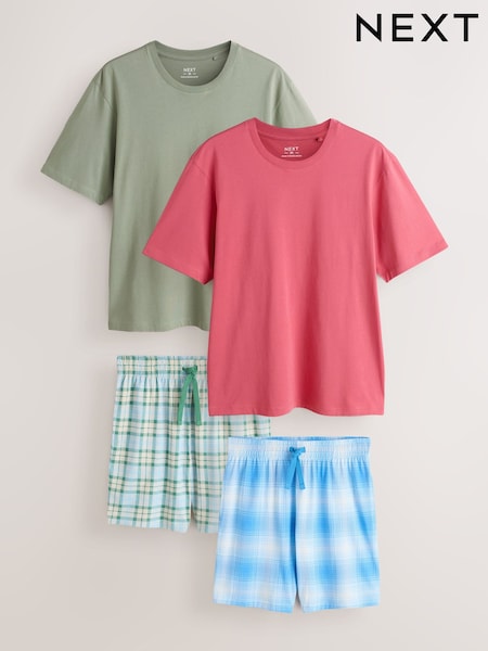Green/Pink Check Jersey Short Sleeve Pyjamas Set 2 Pack