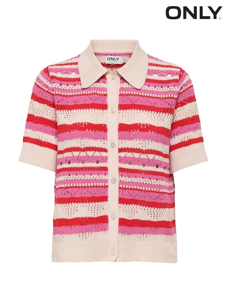 ONLY Red Pink Short Sleeve Button Through Knitted Polo Top