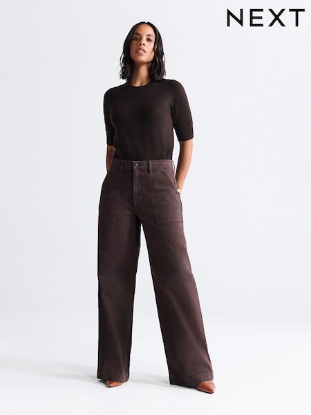 Chocolate Brown Utility Wide Leg Jeans