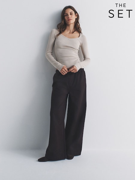 The Set 2 Pack Pull On Wide Leg Lightweight Jeans Mid Blue/Chocolate Brown