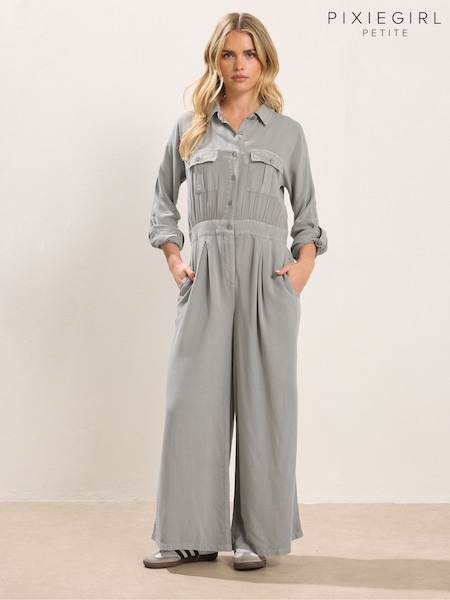 PixieGirl Petite Grey Acid Wash Wide Leg Jumpsuit