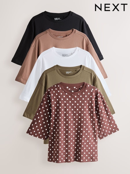 Rust/ Neutral/Yellow/Green/Red Relaxed Boxy Elbow Length Crew Neck T-Shirt 5 Pack