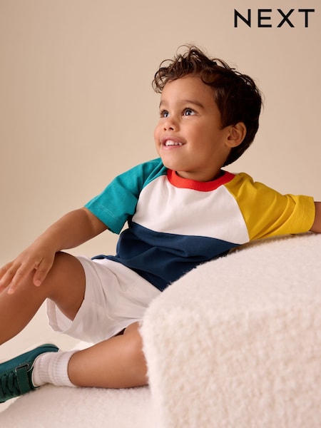 Azul/Amarillo - Camiseta de manga corta con bloques de color (3meses -7año) (3meses -7años)