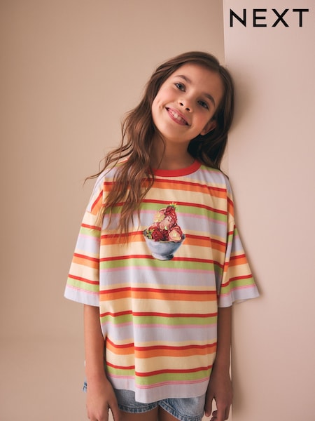 Helado a rayas - Camiseta holgada con lentejuelas y corte cuadrado (3-16años)