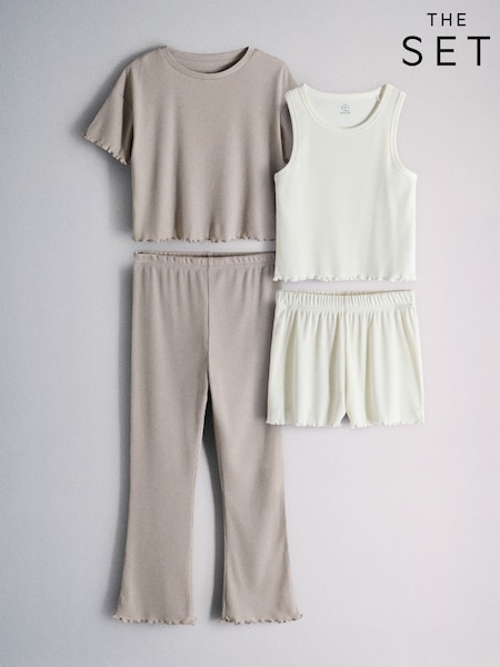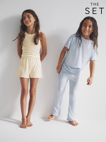 Azul/Amarillo - The Set 4 Pack Chaleco de canalé, pantalones cortos, camiseta y Leggings acampanados Pijamas Set