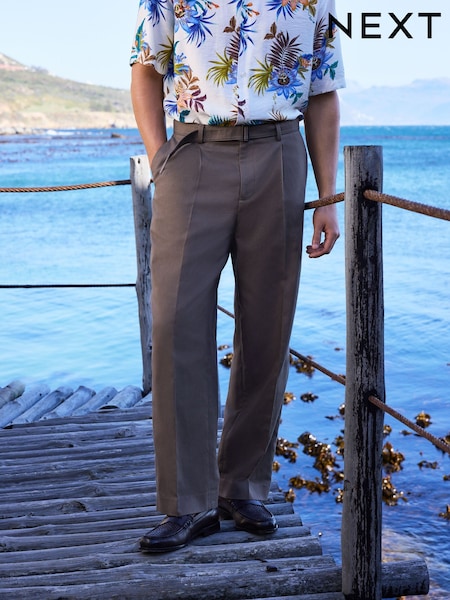 Marrón - Pantalones de vestir de corte relajado, confeccionados en mezcla de algodón y lino, con Self Fabric Belt.