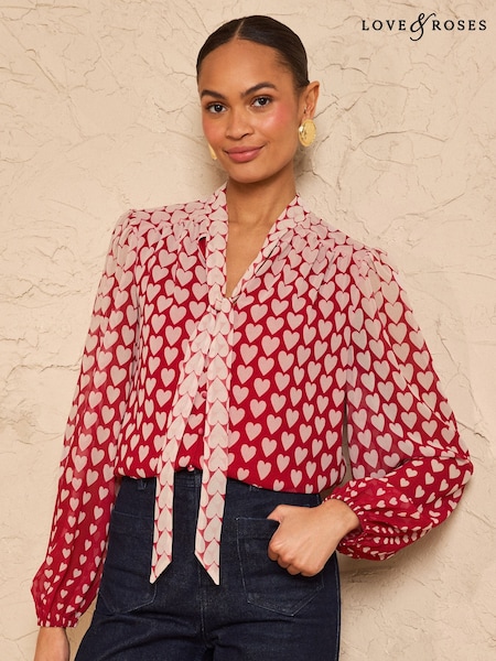 Corazón rojo - Blusa de manga larga con lazo Love & Roses
