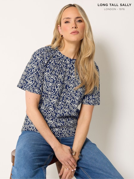 Azul - Top Long Tall Sally con puños fruncidos y lunares Dobby Sally
