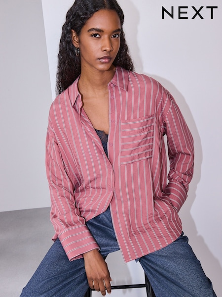 Rosa/Negro - Camisa extragrande de manga larga con raya jacquard